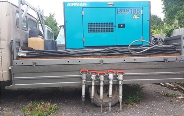 Ямочный ремонт дорог - отбойные молотки, продувка сжатым воздухом.