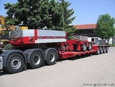 Для перевозки негабаритных и тяжелых грузов используют трехосные тралы. На них доставляют трубы, оборудование и станки.