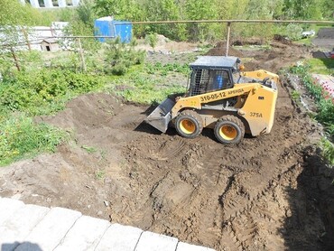Производим различные земляные работы тяжелым мини погрузчиком. Обратная засыпка. Планировка под нивелир. Планировка уклонов. Срезать грунт. Отсыпать участок. Выкорчевать поросль. Убрать сгоревший домик. Загрузить в самосвалы лишний грунт.